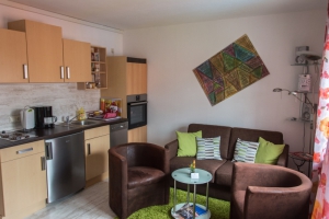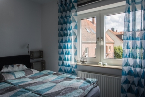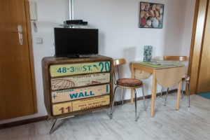 Diese gemütliche, 2017 komplett neu renovierte Ferienwohnung mit 30 m² bietet Platz für 2 Personen. Sie liegt im Anbau unseres Hauses in der 1. Etage. Wir haben diese Wohnung für Sie so eingerichtet, dass Sie sich in dem neuen Wohnraum mit integrierter Küche und Essplatz nur wohlfühlen können. Der Schlafraum mit , großem Boxspringbett lässt Träume wahr werden.Das frisch renovierte Badezimmer mit Dusche und WC gibt der Wohnung den letzten Schliff.